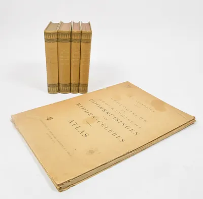 E.C. Abendanon. Leiden, E.J. Brill 1915-1918. 4 vols. and atlas. xviii,1903 pp., vols. with consecutive paging. 4to. Vols. with numerous photo-engravings (incl. frontispiece vol....