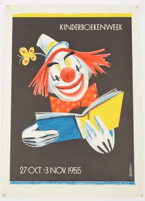 Piet Worm (1909-1996). Reading clown. Wall plate. CPNB, 1955. 66 x 47 cm.