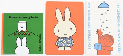 Lieve oma Pluis. Mercis, Amsterdam, 1996. With dedication 'Voor kleine Wapiti, Dick Bruna' + Stichting Bevordering Hygiënische Gewoonten 1963. Jaarverslag. 8 b/w illustrations...