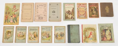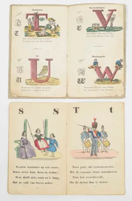 Met gekleurde plaatjes. Title page: Nieuw Prent ABC. Voor de lieve jeugd. Amsterdam, D. Allart, c. 1860. (14 p.), 25 handcoloured woodcut. ills., orig. printed wrapper, 12mo.