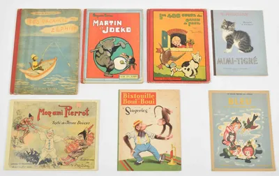 Texte de Jérome Doucet. Paris, Librairie Ch. Delagrave. Ills. A. Robida. Rebound using orig. boards. Internal traces of use, fair copy + Jean de Brunhoff. Les Vacances de Zéphir....