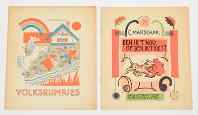 The Hague, De Baanbreker, Servire, 1930. Ills. Konaschetwitch. Authorised Dutch adaptation by Ljoeba Dworson and Elise Hess-Binger. 10 pp., stapled + from the same series: Volksrijmpjes....