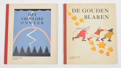 Collection of 3 stories: De gouden blaren, Het vroolijke onweer, Dieren in den winter. Brussels, De Wilde Roos, c. 1930. Ills. by Engel, Goerjan, Koeprejanow and Wyschnewetski,...