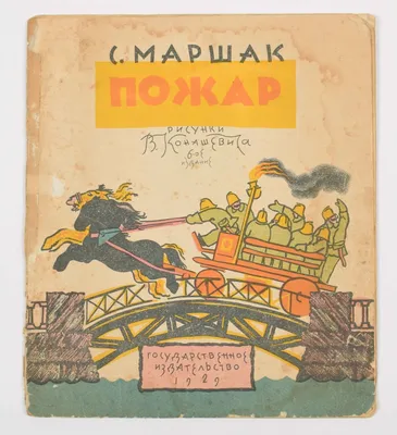S. Marshak. Ills. by Konashevich. Leningrad, 1929. 10 p. Sl. weathered copy with traces of use to spine and edges, mild dampstaining and minor tape remains to spine.
