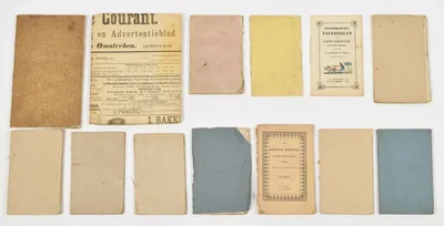 raadsels, enz. Door Oom Diederik. Met vier platen. Schiedam, H.A.M. Roelants, c. 1852. 128 pp. Cased orig. wrapper with cover made from old newspaper. Spine worn off, front loose....