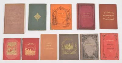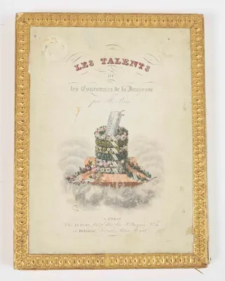 Jean-Pierre Brès. Paris, Lefuel, c. 1830. 8 vols., each with coloured engraved frontispiece: La broderie, Le chant, La danse, Le dessin, L'économie domestique, L'écriture, Les...