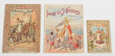 Amsterdam, J. Vlieger, c. 1887. 34 p. 8vo. Small tear to spine, else a clean copy + Intocht van St. Nicolaas door A.C. Callenfels. Alkmaar, Gebr. Kluitman, c. 1903 + Sint Nikolaas...