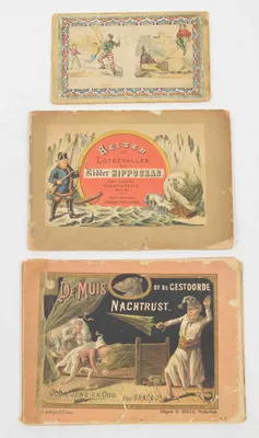 Tiel, H.C.A. Campagne, c. 1880 + De kat van den Schach van Perzië. Tiel, H.C.A. Campagne, c. 1880. Back cover dam. + Peter Leeuwenhart. W. Casparie, Groningen (?), c. 1890. Edges...
