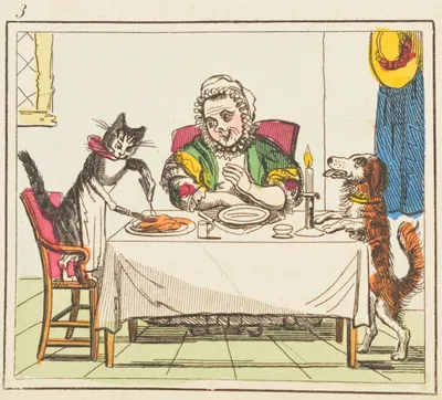 Een tegenhanger van De kluchtige aap en het poesje. By J.F.L. Müller. Amsterdam, J. Guijkens, n.d. (1838), 16 p., with 16 handcoloured, lithographed plates, original clothbacked...