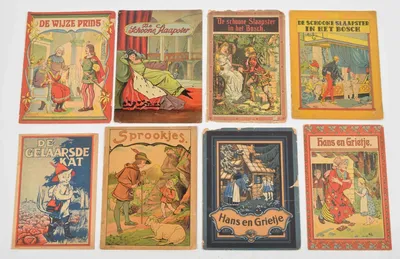 No. 1 J.Z.A. on front board, c. 1910. Oblong. 10 p. With Snow White, Alice in Wonderland and Fritsje en de Menscheneter + De Gelaarsde Kat. Mass-produced picturebook no. 829, c....
