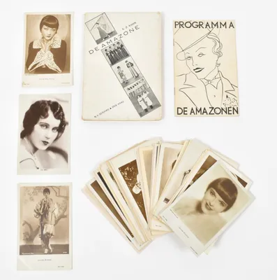 (1) 11 male and 66 female picture postcards, including a.o. Louise Brooks, Fay Wray, Anna May Wong, Greta Garbo and Marlene Dietrich.
