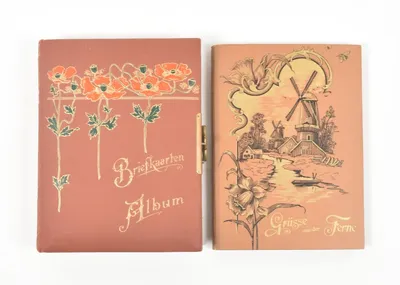 (1) Art Nouveau copper-locked album incl. ca. 200 picture postcards sent to Mejuffrouw Netta v/d Schilt Rozengracht Amsterdam. Added: (2) album with 81 postcards from the same...