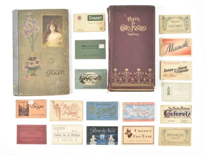 Album with 485 topographical (partly circulated) picture postcards. With another album cont. ca. 270 picture postcards. All Europe, approx. 1900-1930. -and (3) 17 Souvenir booklets...