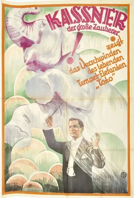 zeigt das Verschwinden des lebenden Tempel-Elefanten "Toto". Friedländer, Hamburg, 1929. ca. 140 x 95 cm. Lith. no. 8559.