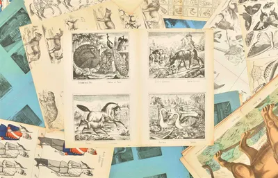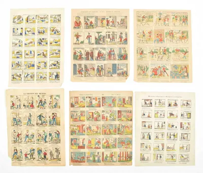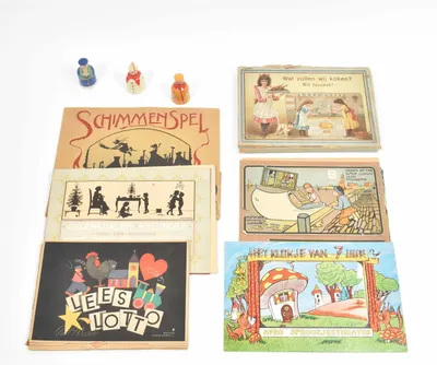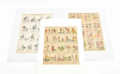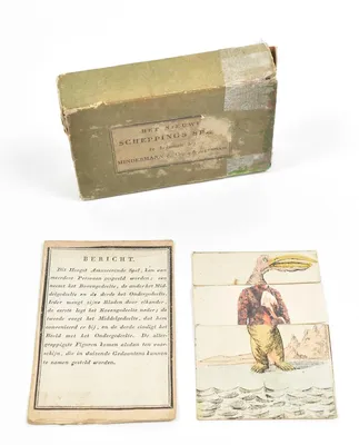 Paris, Pintard jeune, n.d. (ca. 1840), 32 p., w. fold. col. lithogr. background plate w. slits for inserting 14 cut-out col. lithogr. pieces (numb. 1-11, and 3 unnumbered, these...