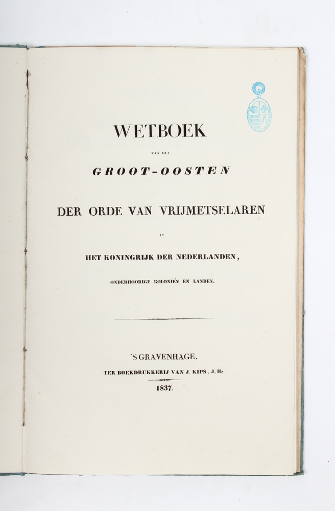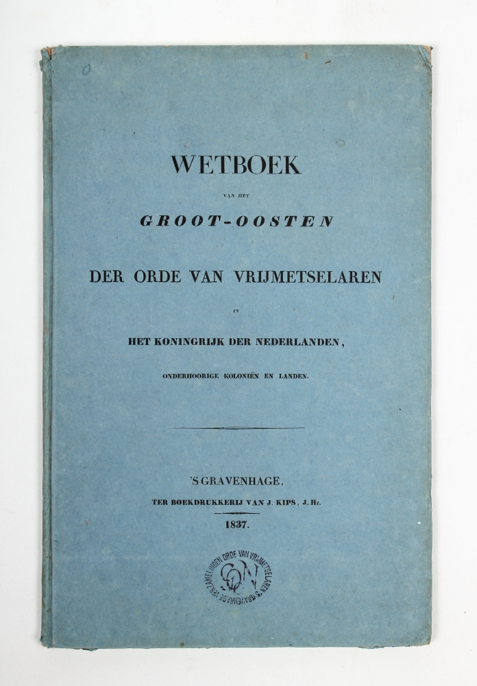in het koningrijk der Nederlanden, onderhoorige koloniën en landen. 's Gravenhage, ter boekdrukkerij van J. Kips, H. Hz., 1837. 37 pp. In original blue cardboard binding.