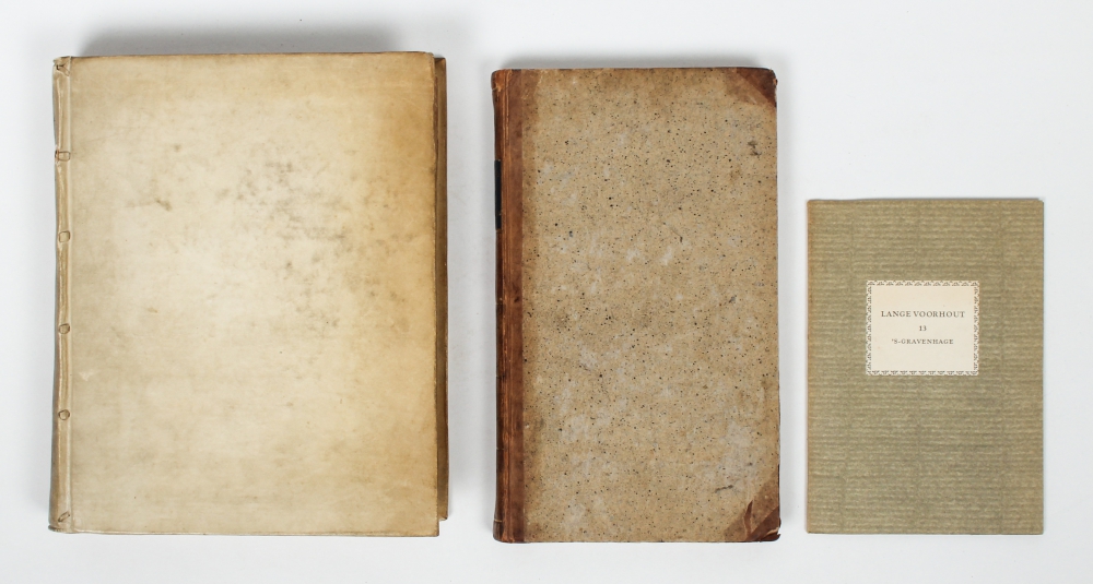 Here and there slightly tanned, lacks one folding plate (view of het Lange Voorhout), profile with minimal tear. The first edition of the first extensive description of the city. Bound together with: (2) J. van der Does. 's Graven-Hage, Met de voornaemste plaetsen en Vermaecklijckheden. The Hague, H. Gael, 1668, (10),143,(1) p., with very fine, large folding, engraved plan and 1 engraved view by C. Eland(t) (of 5). Lacks four plates and 3 leaves from the front matter; the large plan is (as is another copy we checked online) signed in pen by C. Elandt. This plan with some reparations but in very good condition.