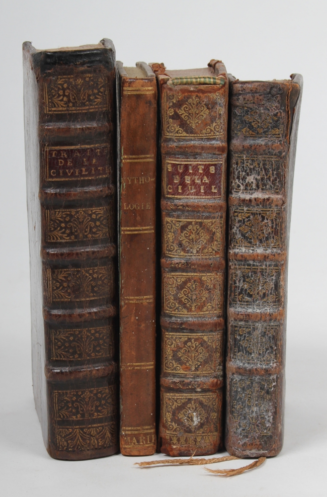 And: Nouveau Traité de la Civilité qui ce pratique en France (...). The Hague. Adrien Moetjens. 1731 + Leçons élémentaires sur la Mythologie, suivies d'un Traité sommaire de l'apologue ou de la Fable Morale. H. Engrand. Rheims. Regnier. 1824 (total 4).