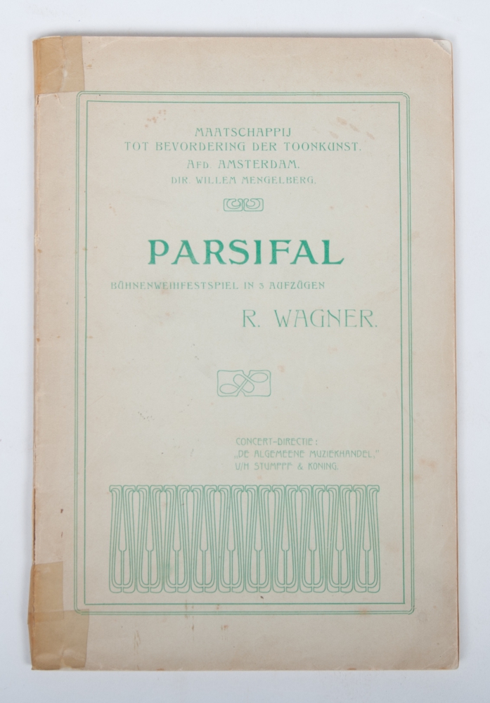 Binder with 5 manuscript original postcards in German by Mengelberg, mostly addressed to Prof. Dr. Otto Lanz and 1 letter from art historian Paul Schubring addressed to Frau dr. Keyzer. With file with copies of this correspondence, and a number of telegrams of which the original is not included + 16 photocards of Willem Mengelberg + 6 programme booklets, most Concertgebouw Amsterdam including a rare booklet "50 jaar Concertgebouw Amsterdam 1888-1938". With a number of newspaper articles on Mengelberg, a framed etching of Richard Wagner and a photocollage/ -montage of small portrait photos, probably of conductors.