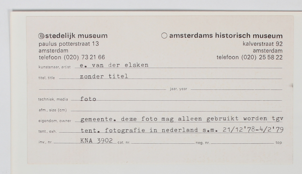 Later print used during the "tent[oonstelling] fotografie in Nederland, s.m. 21/12'78 - 4/2'79". With label Gemeente on reverse.