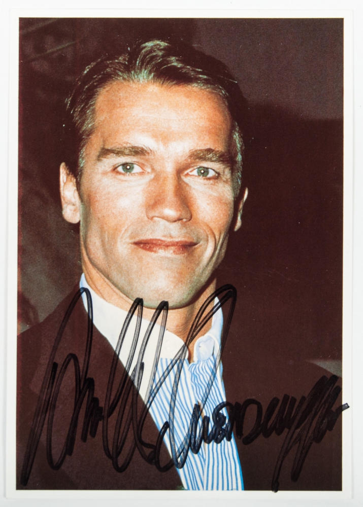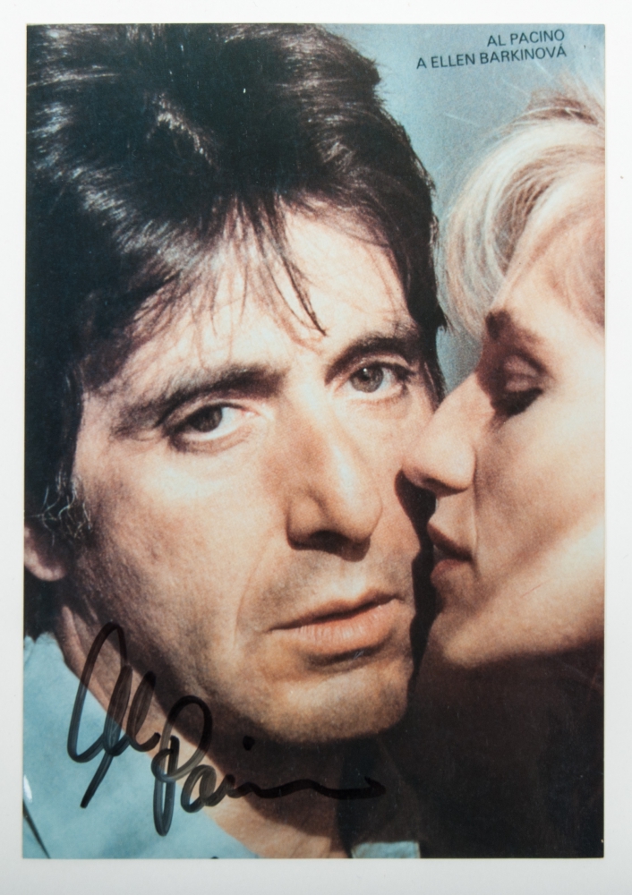 Collection of circa 25 photos of actors and actresses of modern/day cinema, of which 10 signed by the actor or actress concerned near his or her image. With autographs of Al Pacino, Robert De Niro, Arnold Schwarzenegger, John Travolta and others. Including a large-size signed photo of Italian director Frederico Fellini.