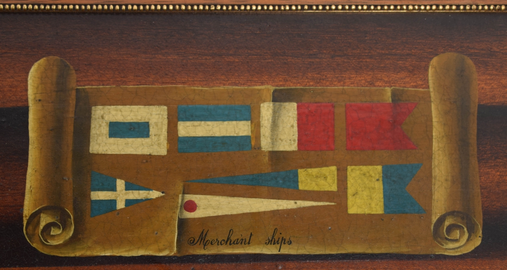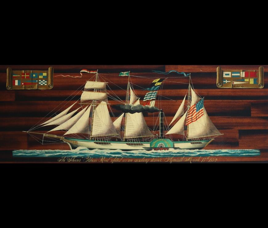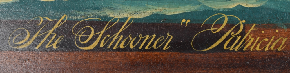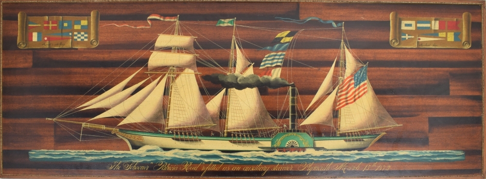 Schooner 'Patricia Reed', "Plymouth March 15th 1873". Oil on mahogany. 59 x 159 cm. Made in second half 20th century.