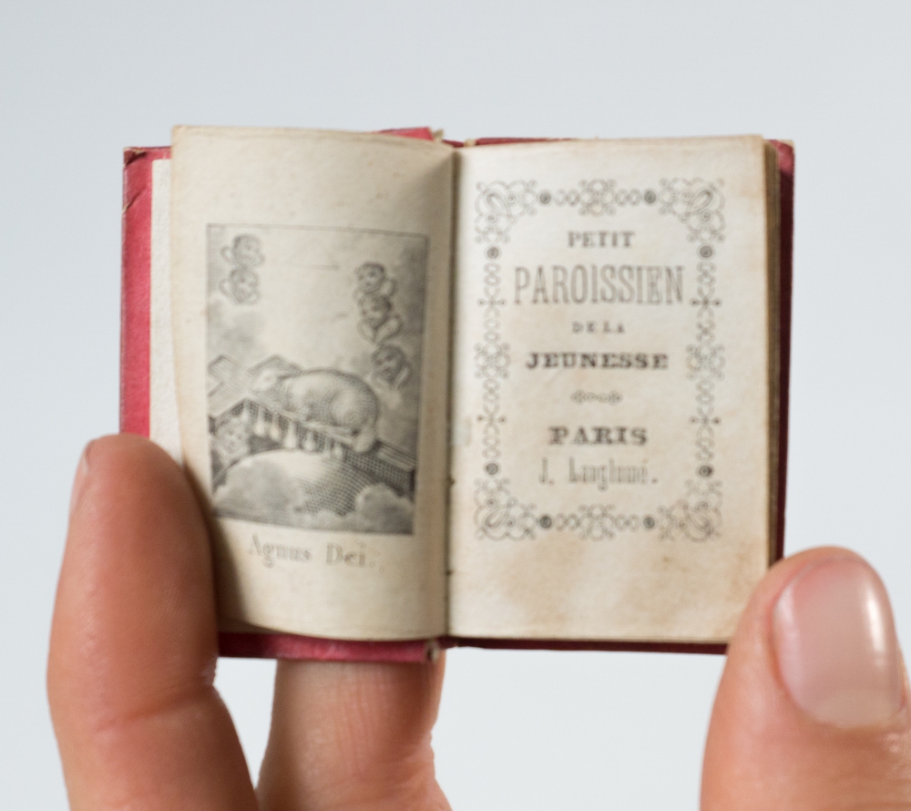 Paris, J. Langlumé, n.d. (ca. 1850), 95,(1) p., with 12 steelengraved plates, original cardboard, all edges gilt, 64 mo. (4/5 x 3 cm.) (cardboard slightly worn along edges, charming and relatively rare miniature book).