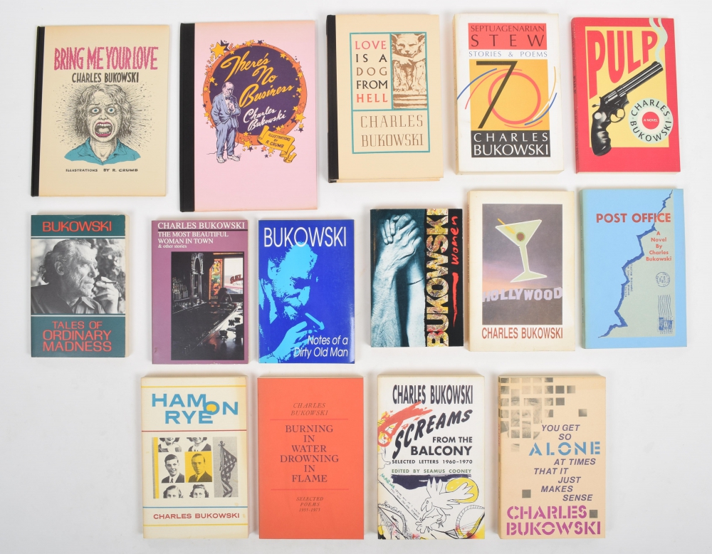 There's No Business. Black Sparrow Press, Santa Rosa, 1993. 17 pp. In half cloth. Illustrations (incl. binding) Robert Crumb + Bring met you love. Black Sparrow Press, Santa Rosa, 1992. In half cloth. Ills. Robert Crumb - and 13 more by Bukowski.