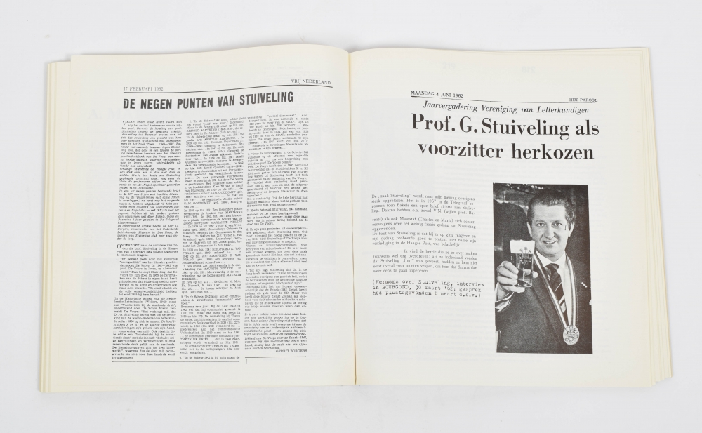 Mandarijnen op Zwavelzuur. Amsterdam, Thomas Rap, 1973. Half cloth. Square 4to. 282 p. 4th edition. Name previous owner written in small letters on endpaper, else good copy.