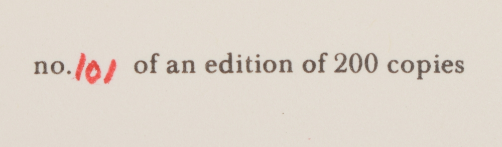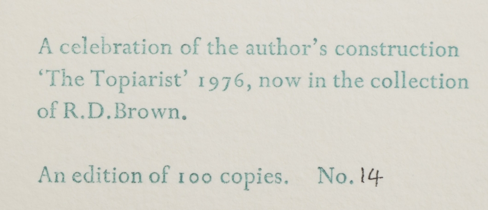 + White Butterflies. Tarasque Press, undated (1969). + Makintosh Buttons, Sarum Press, 1976. Numbered 101/200. + The Topiarist 3. Coracle Press, 1977. Numbered 14/100. + Pins, some poems. Western Australia, 1980. (total 5)