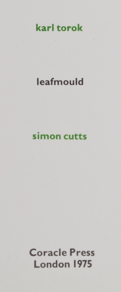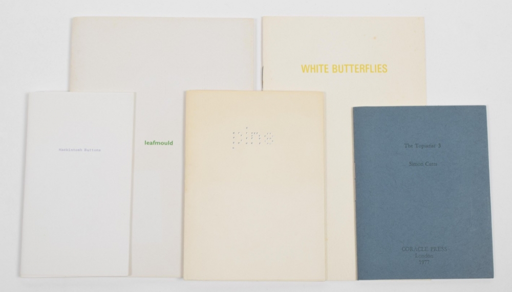 A collection of five beautiful small books by Simon Cutts. Includes Leafmold (with Karl Torok). Coracle Press, 1975. Signed edition No.6/50.
