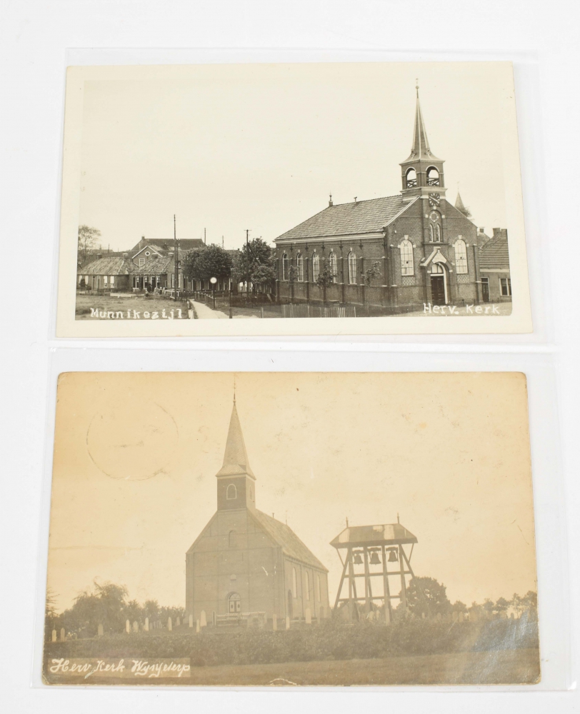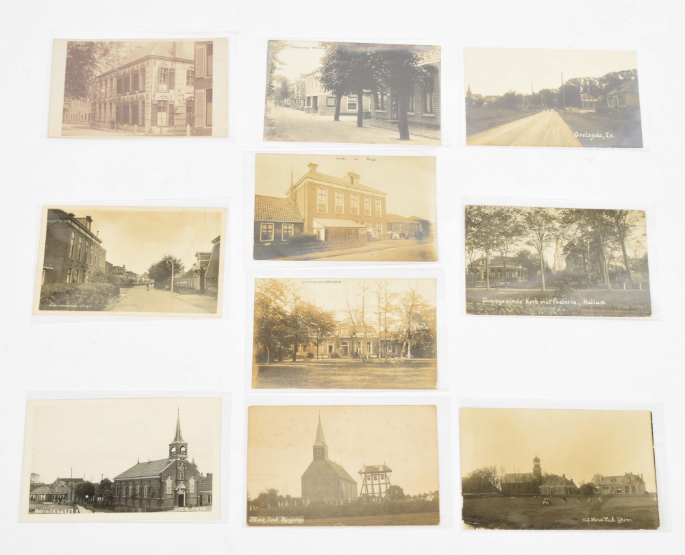 Collection of 10 photocards. 1) Giekerk, Groeten uit; 2) Leeuwarden; 3 and 4) Warga, Leeuwarderweg and Groete uit; 5) Munnikezijl, Herv kerk; 6) Weidum, Straatweg; 7) Ytens, Ned Herv Kerk; 8) Hallum, Doopsgezinde kerk with pastorie; 9) Ee, Oostzijde; 10) Wijnjeterp, Herv kerk.