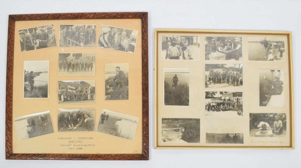 Zoutkamp, 2 August 1924. Village festival with angling match Visclub Gruno. Framed in mount. Frame 57 x 63 cm. + Jubileum-concours Gruno Visvliet 6 and 9 August 1911-1936. 10 photos in frame. Photos each ± 17.5 x 12 cm. Frame 65 x 69 cm.