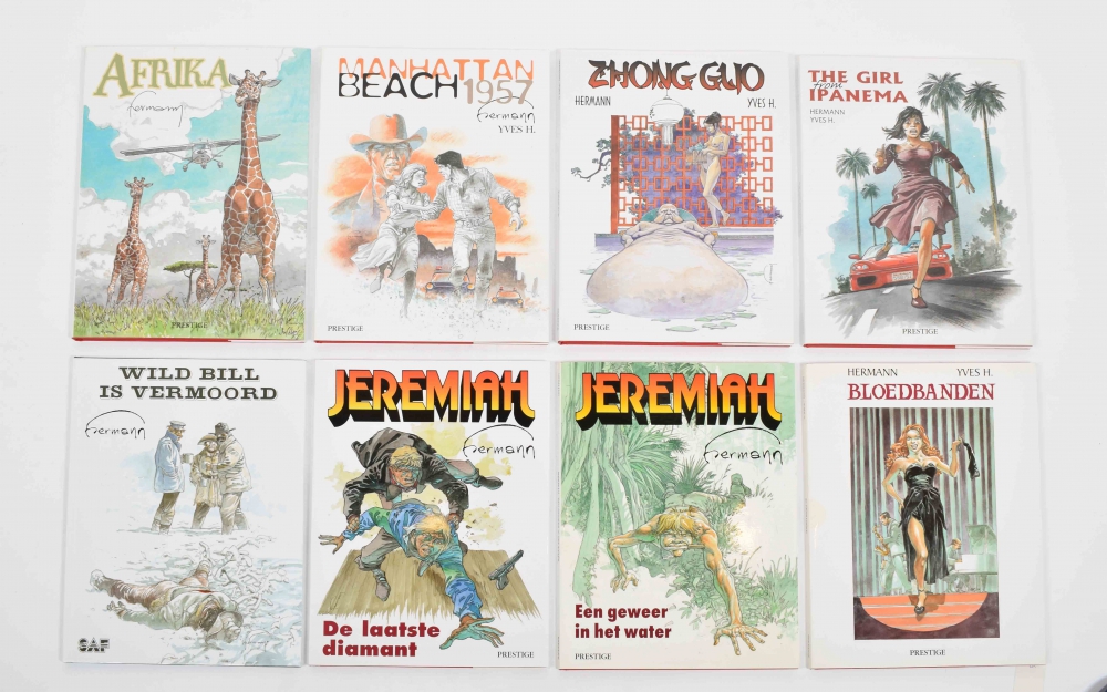 Wild Bill is vermoord. Strip Art Features, 1999. Bound with dust jacket. No. 183/400 with bookplate. Without slipcase + Manhatten Beach 1957, 2002 + The Girl from Ipanema, 2005 + Zhong Guo, 2004 + Jeremiah - De Laatste Diamant, 2003 + Jeremiah - Een geweer in het water, 2001 + De Bloedbanden, 2000 + Afrika, 2007. All bound with dust jacket in slipcase.