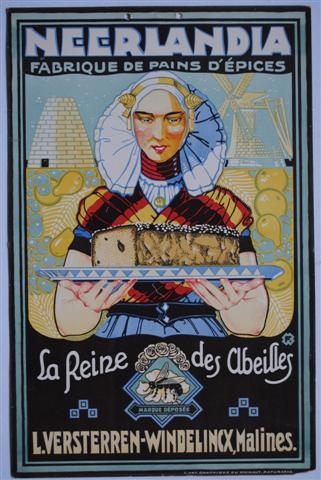 This item contains no English description. See the Dutch description: Neerlandia, fabrique de pains d'epices. < la Reine des Abeilles, L. Versterren-Windelincx, Malines. L'art graphique du hainaut, Paturages, ca 1920.