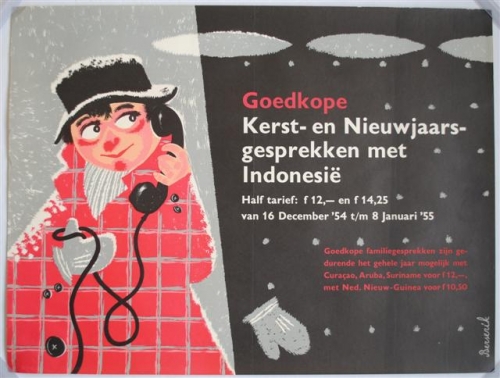 This item contains no English description. See the Dutch description: In opdr. van P.T.T. Met tarieven voor de overzeese gebiedsdelen. Ontwerp H. Berserik, 1954.