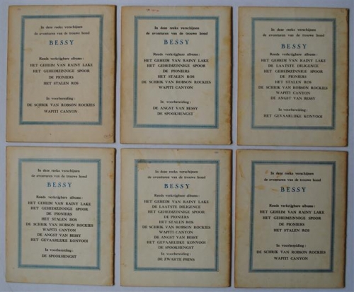 See the Dutch description: De avonturen van Bessy. Uitg. N.V. Standaard boekhandel, Antwerpen-Amsterdam. Dln. 5,6,8,9,10 in eerste druk. + deel 2 in vroege tweede druk.