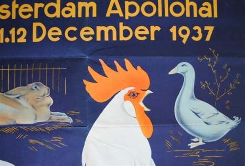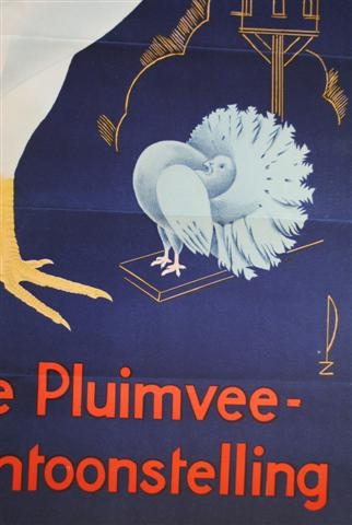 See the Dutch description: Internationale Pluimvee- en Konijnententoonstelling. 909 x 59 cm. Signatuur PZ. (mogelijk Piet Zwart?)