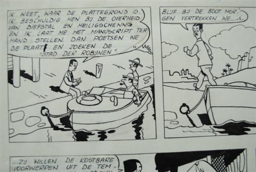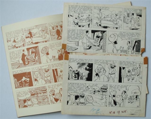 See the Dutch description: Willy Maltaite (will)/ Fernand Dineur. Uitg. Albino. Ongekl. Gekartonneerd, oplage 30 genumm. exemplaren. Dit is nr. 18. Met orig. plaat uit het album, gepubliceerd in Robbedoes, 1949. Boven- en onderstuk. Pagina 18a en 18b. Totaal 50,5 x 39 cm.