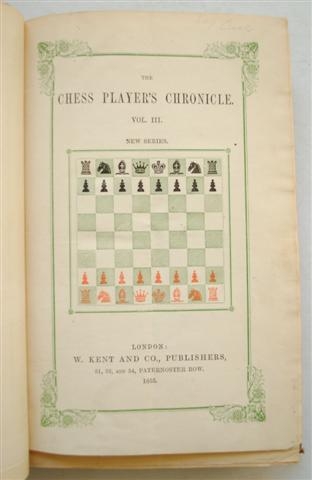 The Chess Players Chronicle. Vol III. new series. W. Kent. London. 1855. Founded and edited by Howard Staunton.