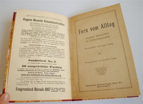 Fern vom Alltag. Hundert Aussichten im Schachpanorama. Gesammelt von Leo Loewy. Bernhard Kagan. Berlin [1925]