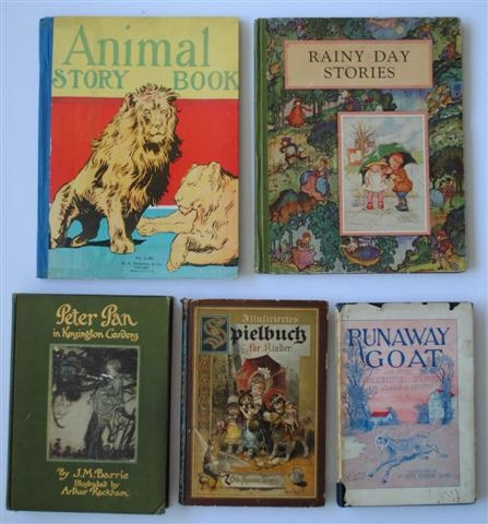 See the Dutch description: J. M. Barrie, ills. Arthur Rackham, Charles Scribners Sons, 1916. + Rainy Day Stories, A collection of short stories and rhymes in simple words, McLoughlin Bros, Springfield, ca. 1900 (enkele lichte besch.) -en 3 andere.