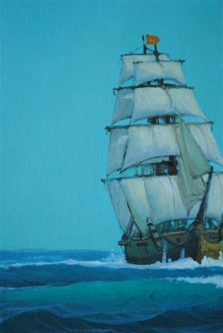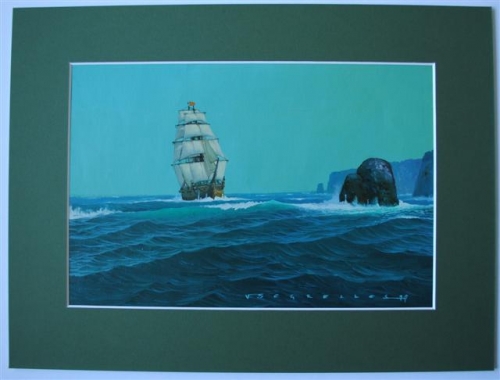 This item contains no English description. See the Dutch description: Schip voor de kust. 1999. Olieverf. 23 x 34,5 in passe-partout.