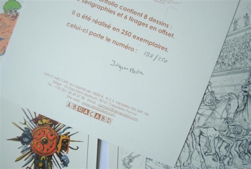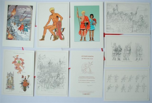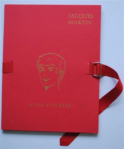 See the Dutch description: Jacques Martin (1921-2010), 60 Ans Avec Alix. Portfolio in roodlinnen map met bandsluiting. 8 platen, waarvan 2 sérigraphien en 6 offset gedrukt. Oplage 250, gesign. door Martin. Dit is nr. 198.