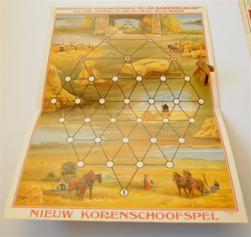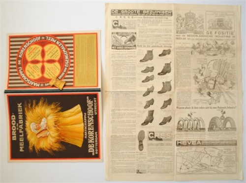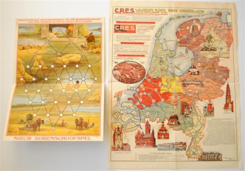 See the Dutch description: CRES schoenen, Heveadorp, ca. 1924. "De éénige schoen voorzien van stalen voetsteun". Spel op papier, gevouwen. + Nieuw Korenschoofspel, Broodfabriek Mij "De korenschoof", Rotterdam/Utrecht. (ca. 1935).