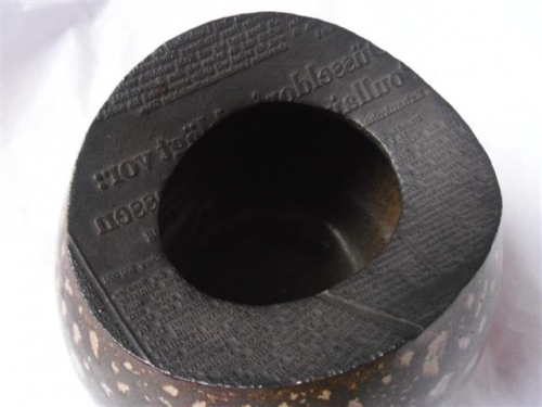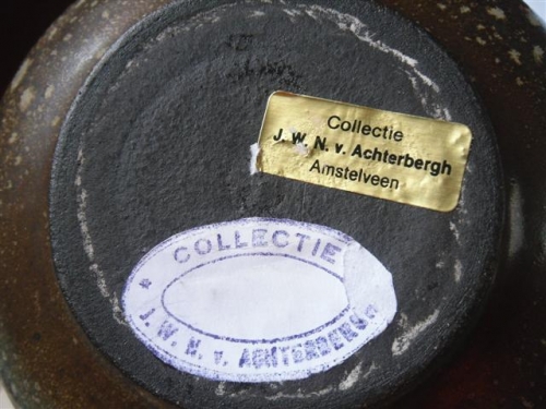 This item contains no English description. See the Dutch description: Keramische vaas met aan de opening afdruk van tekst. Jaren 70. Hoogte 17cm