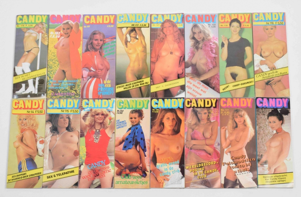 Lot with 36 issues of Candy, Nationaal Sex-Vakblad, between issue 11 and 141. Amsterdam, Peter J. Muller, 1969 - c. 1980 + 94 duplicate + Candy Speciaal issue 5 + Candy issue 217 - and 2 more: La Coppia and Sek Sie.