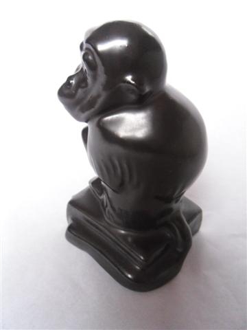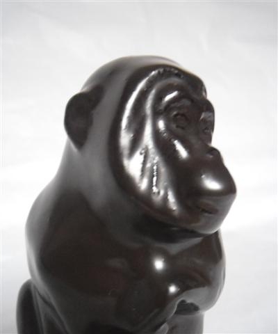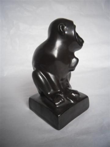This item contains no English description. See the Dutch description: Aardewerken plastiek van een aap. Donkerbruin geglazuurd. Hoogte 14cm.