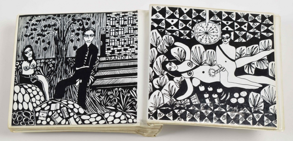 Cologne, Driver Press, 1968. 21 x 26 x 10 cm. 35 serigraphs printed on white plastic sheets with foam and board, joined with four white plastic bolts. Edition of 30, this is 3/30. Signed and numbered by Dorothy Iannone on verso front cover.