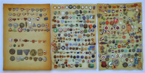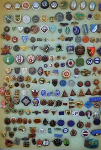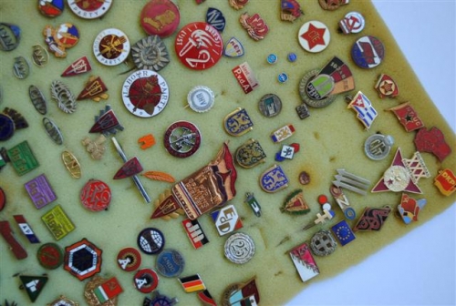 See the Dutch description: Ca 250 speldjes mbt. Bonden en Politieke partijen. Met speldjes PTT, AJC, Drees Lijst 2, Labour Party, etc. + ca 50 speldjes mbt. bijen.